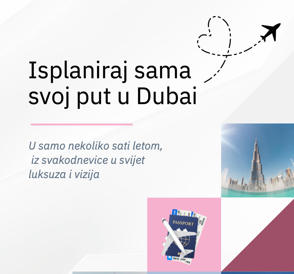 Pakiraj sunčane naočale, otvorene sandale i ljetnu haljinicu. Sljedeći tjedan se budiš uz Burj Khalifu, a večeraš pod palmama. Bez agencije. Bez stresa. Samo ti i grad iz filmova.